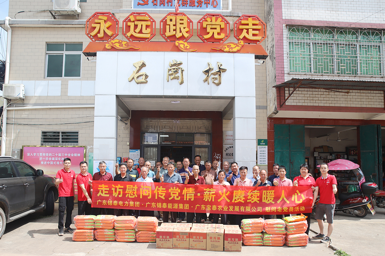 为庆祝中国共产党成立104周年,传承红色精神、赓续红色血脉,弘扬党的光荣传统与优良作风,广东锦泰电力集团有限公司组织慰问队伍,奔赴河源市和平县彭寨镇长沙村、岭西村、龙安村、五星社区,公白镇东联村以及东源县船塘镇石岗村,开展 “慰问老党员活动” ,为147名老党员送去节日祝福与诚挚关怀。